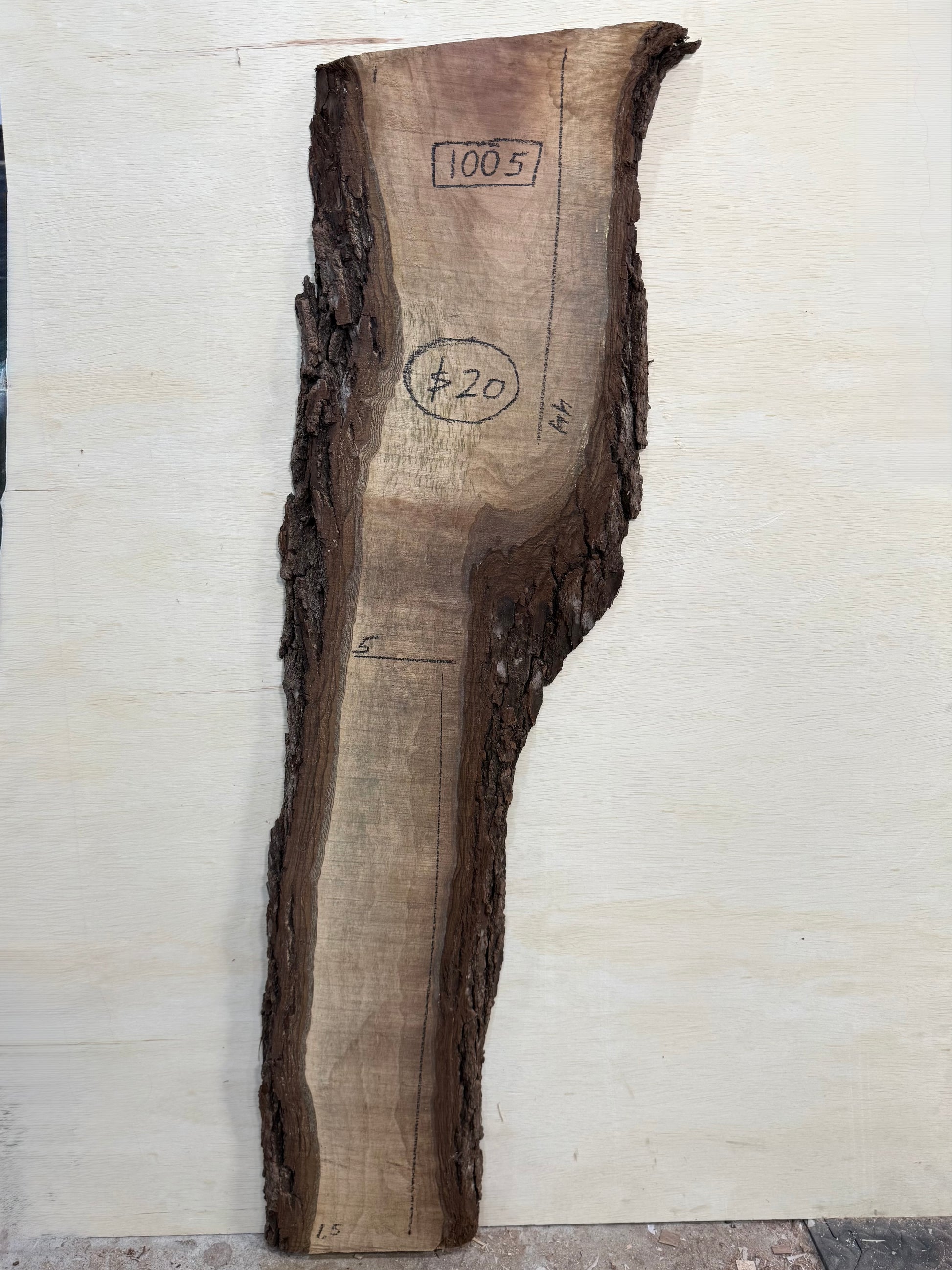 2. "Finished" - the lumber has been cut into live edge slabs and dried, and I worked on both surfaces of the wood (top and bottom) to create a smooth surface. With this option, you'll be able to see exactly what the grain of the slab looks like, and it will be ready to begin your project. With this option, you are purchasing the live edge "finished" slab only. "Finished" priced at $15 per board foot